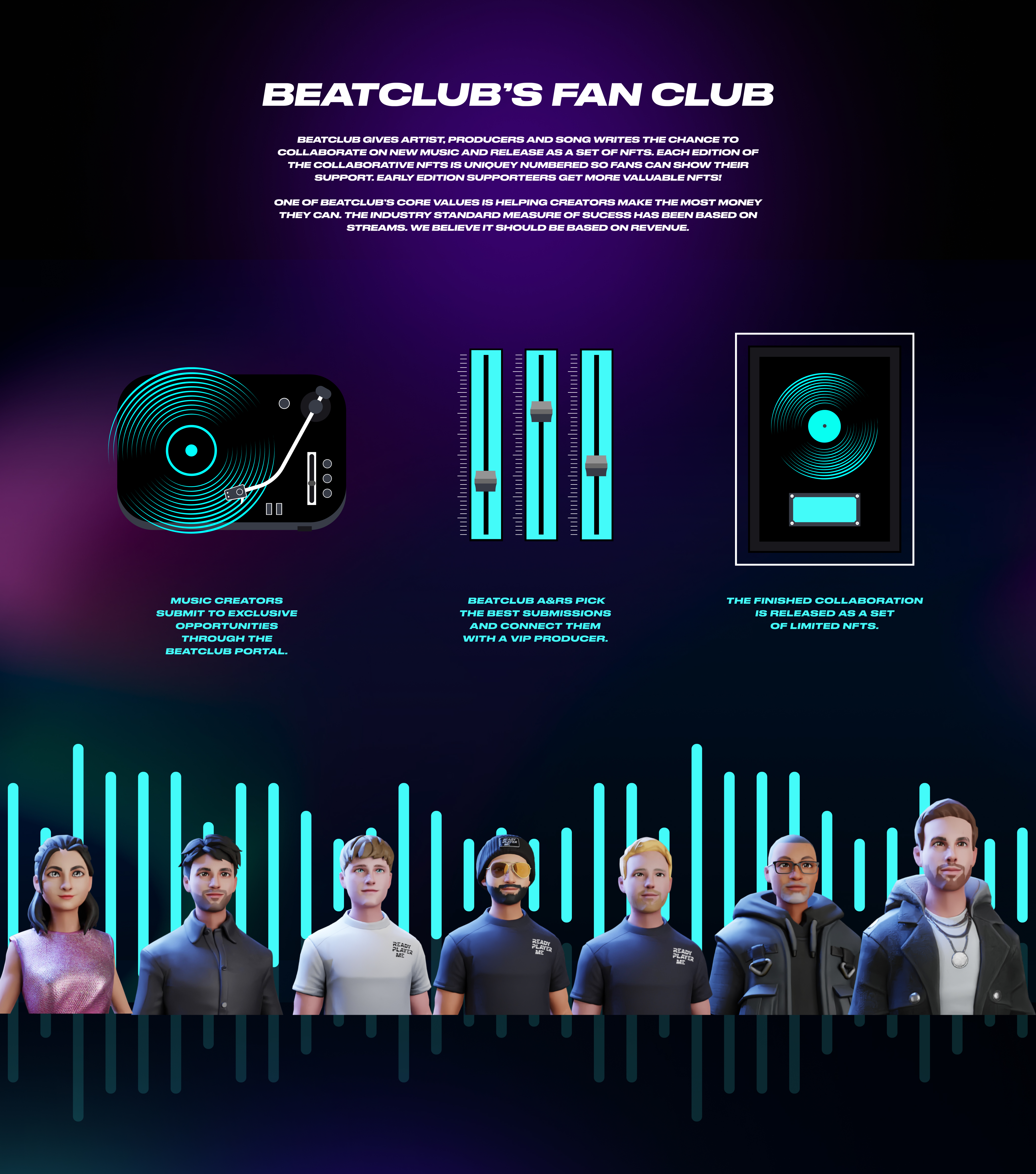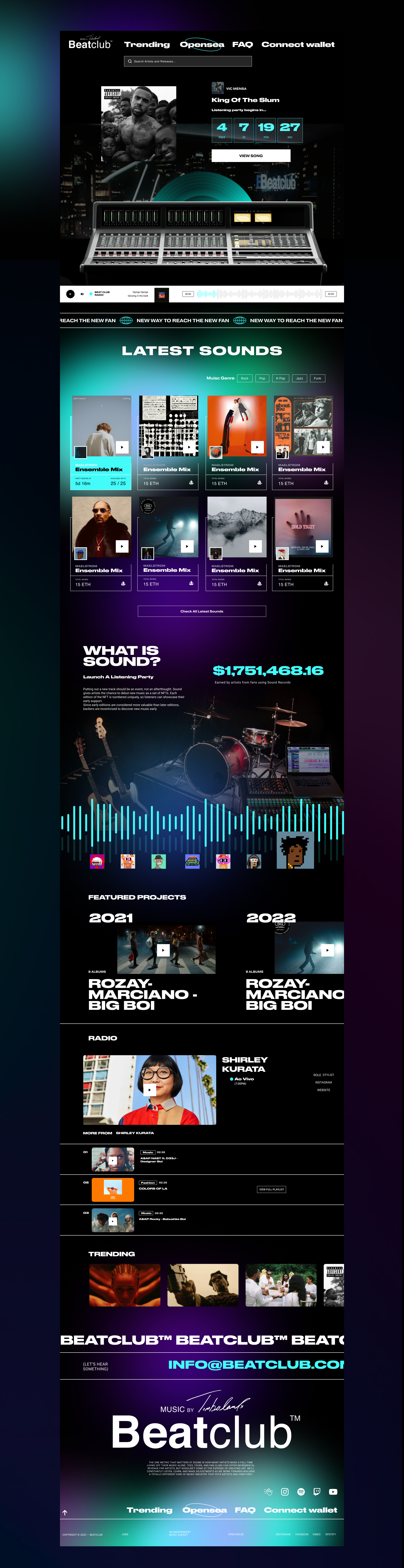 Beatclub is a platform that reunites songwriters, artists and producers from all across the globe. I've designed a whole new homepage well aligned with their branding that also embeds their metaverse.