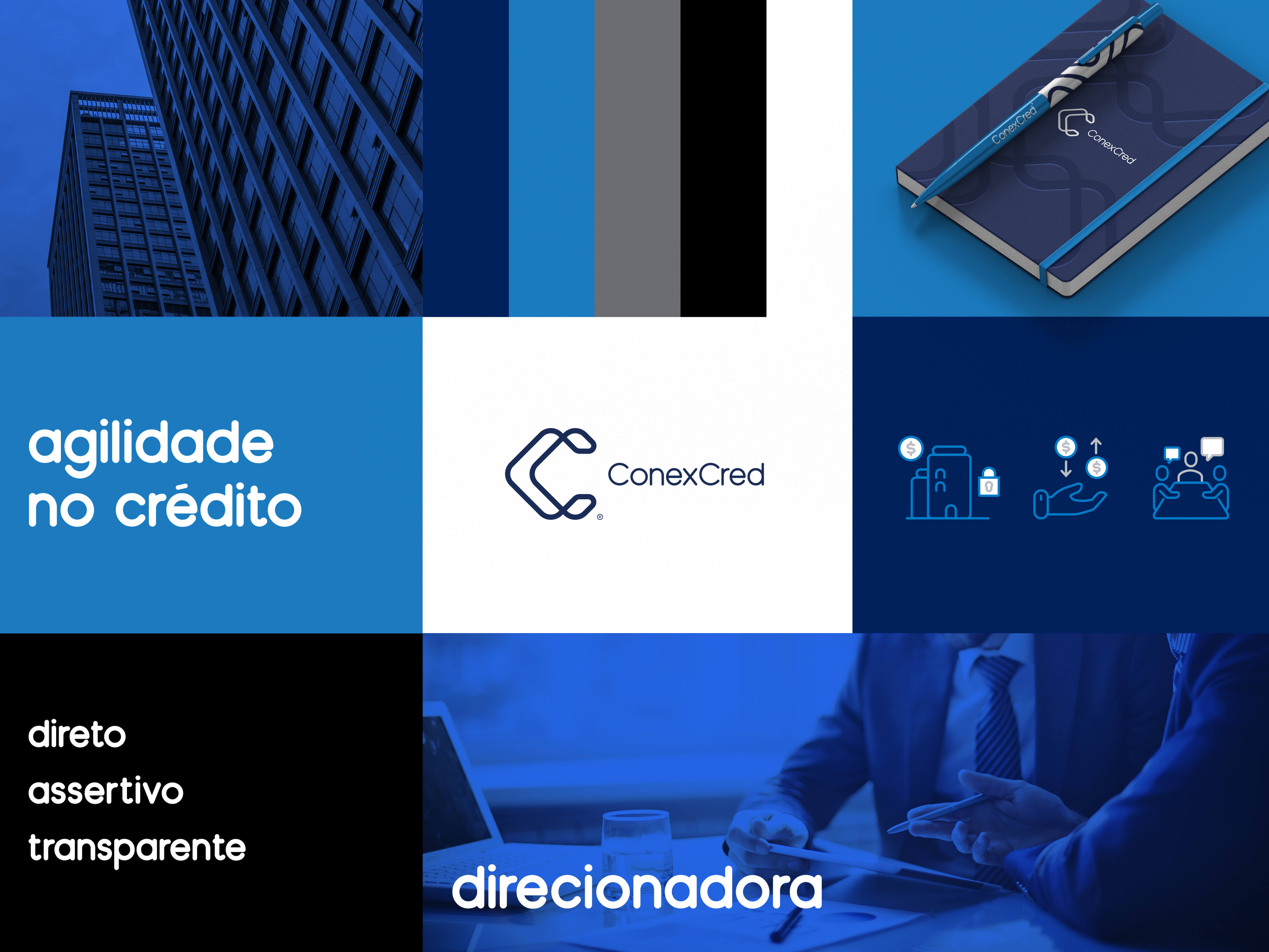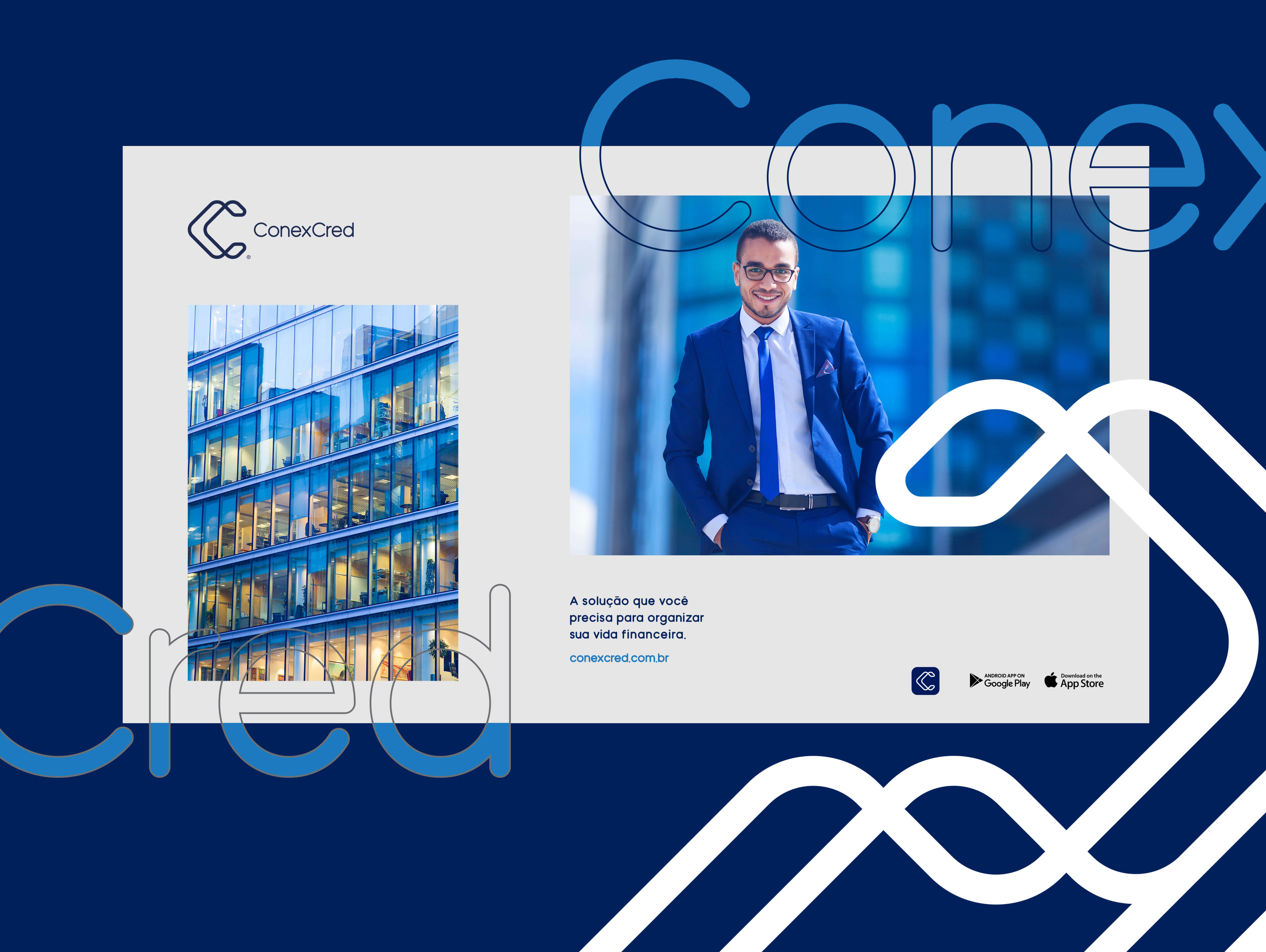 The idea was to develop a brand that would bring familiarity with the category of the financial sector, while highlighting ConexCred's differential point, its connection with customers.